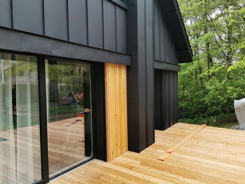 Etapes techniques pour le bardage en aluminium noir et bois à proximité de Nancy